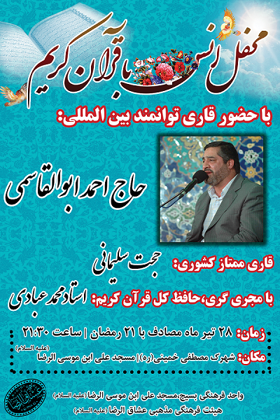 برگزاری مراسم شبهای قدر زمان:شبهای 23،21،19 ماه مبارک رمضان اسلامشهر_انتهای باغ فیض_شهرک مصطفی خمینی(ره)_ مسجد علی ابن موسی الرضا(ع) التماس دعا